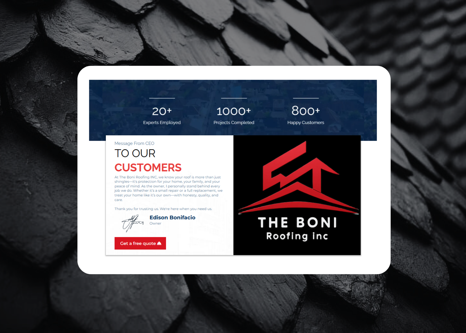 For The Boni Roofing INC, we delivered a bold, modern website built for trust.